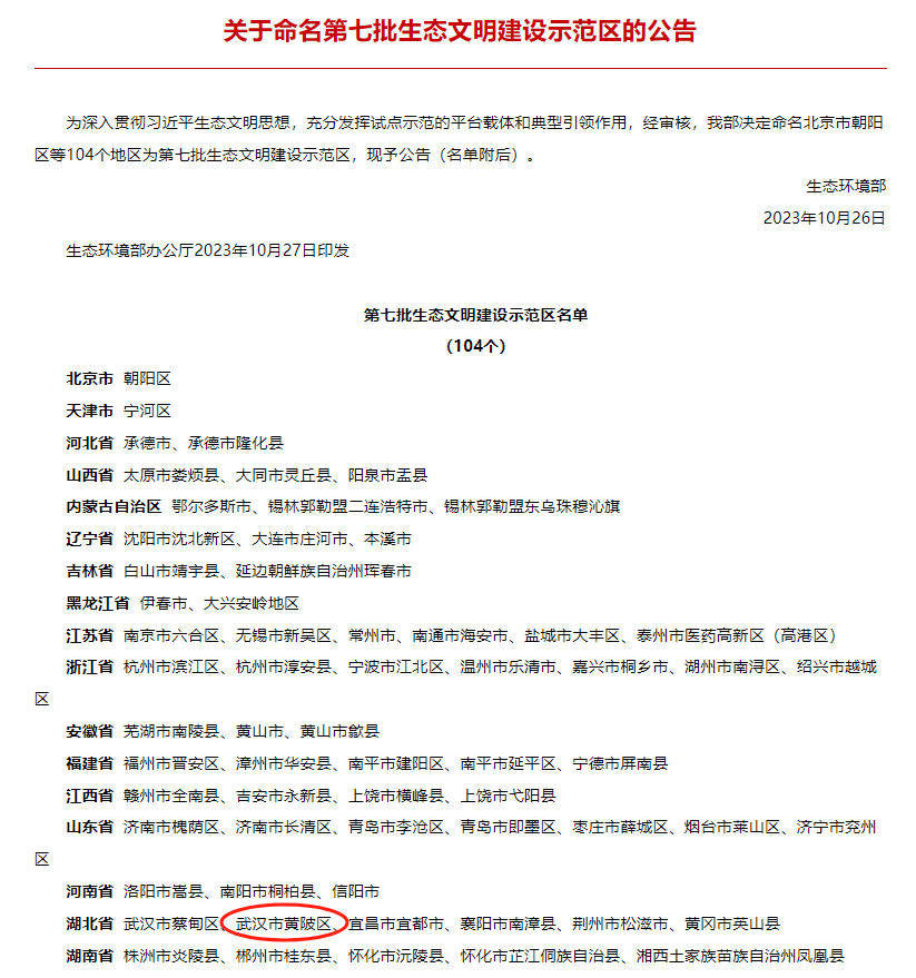 《關(guān)于命名第七批生態(tài)文明建設(shè)示范區(qū)的公告》